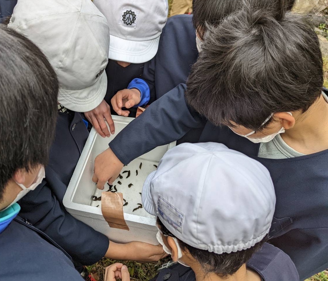 昨年10月に学校のビオトープ委員によって大切に育てられてきた幼虫。当日はいつも幼虫を世話してもらっている方も駆けつけて和やかに進んでいきました。