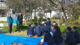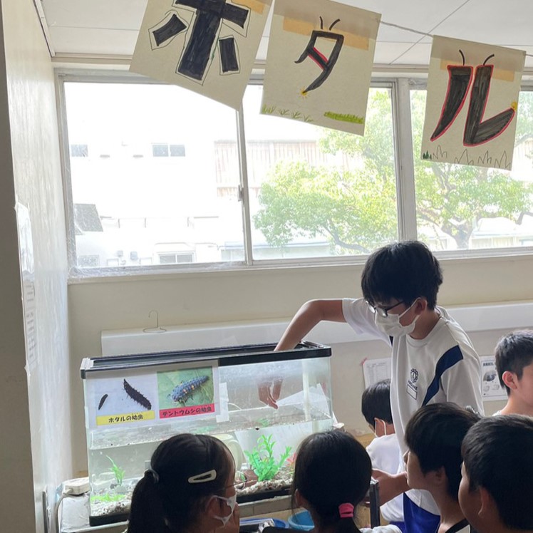 引き渡しではビオトープ委員会の子供達が1人ずつ水槽に幼虫を入れていきました。