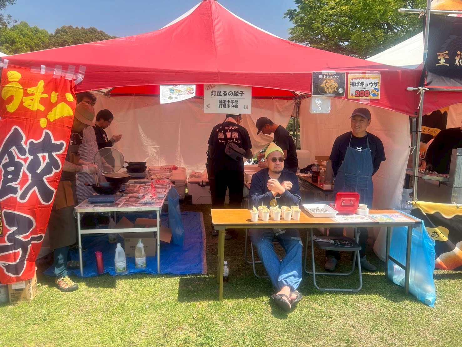 とにかく灯足るの会の店の中は賑やかでず~っとおもろいです。10時30分の開店前から完売した14時30分までの約4時間、終始声を出してふざけながら、めちゃくちゃ真剣に餃子を揚げ続けてました。(笑)