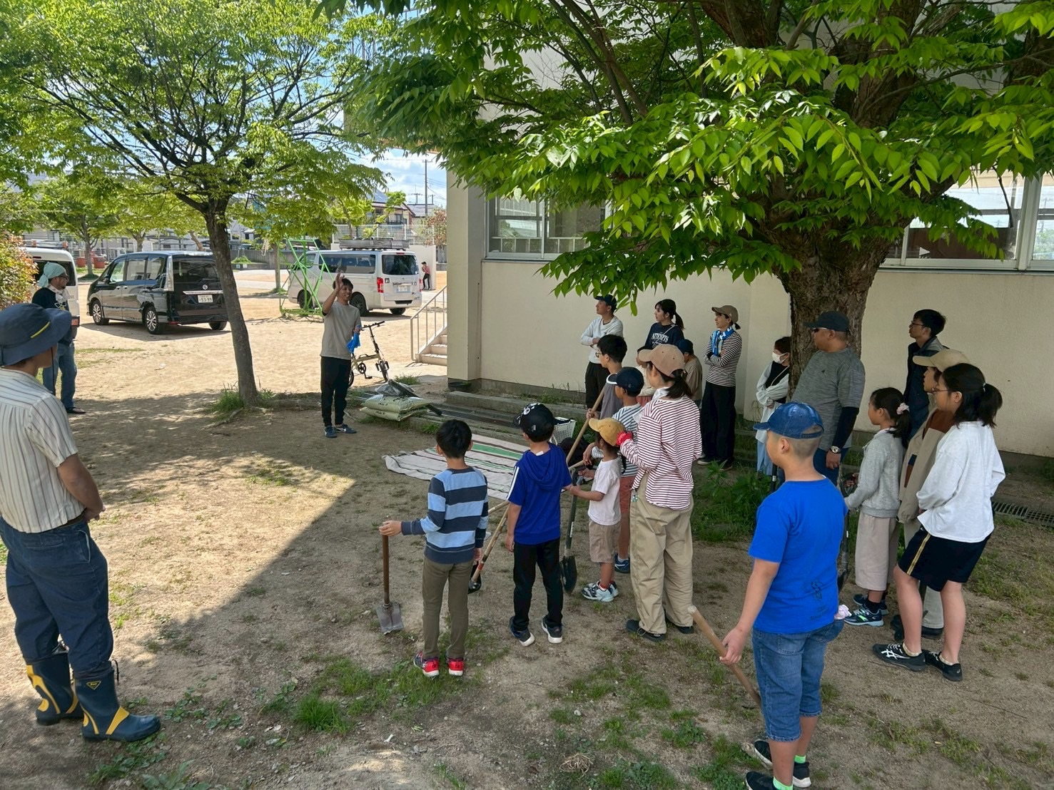 灯足るの会、さつまいもの畑つくり始めました〜本日は第1回目の活動。灯足るの会となでしこの会の親子に集まってもらって土づくりとマルチ張りを行いました!!