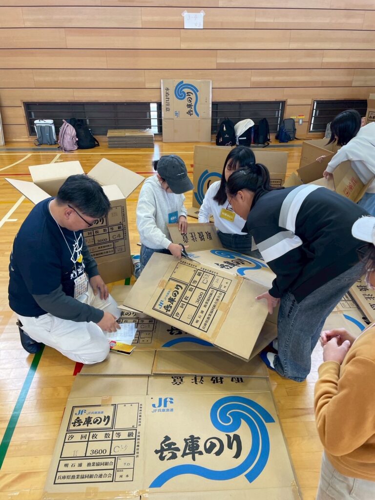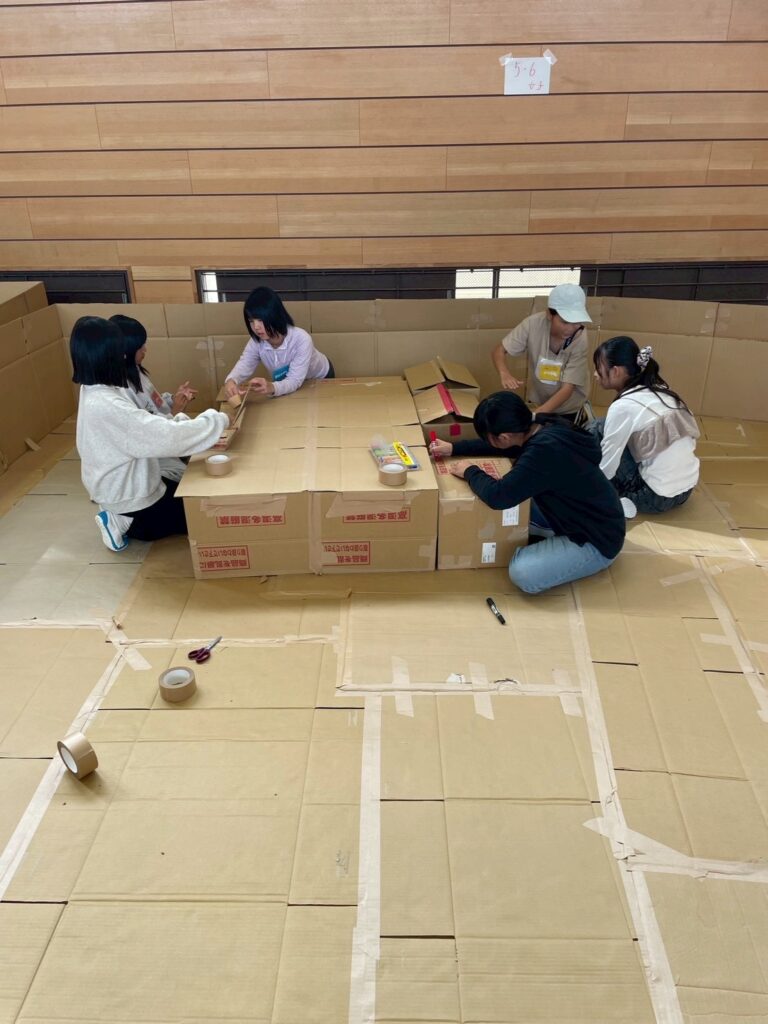 プログラムは、少し天気が悪かったので予定を変更して先に段ボールハウスを作成することに。
