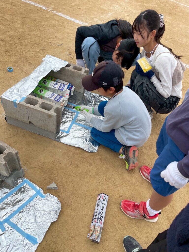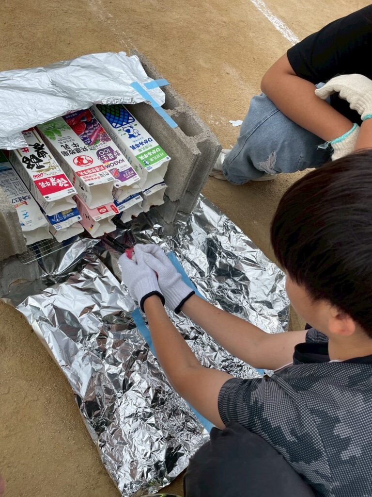 また、カマドームも子どもたちの手で作りました。そしてできたところから着火して、燃え尽きたら完成です。
