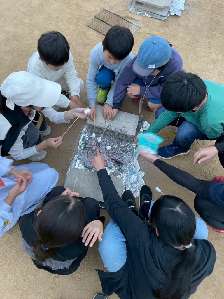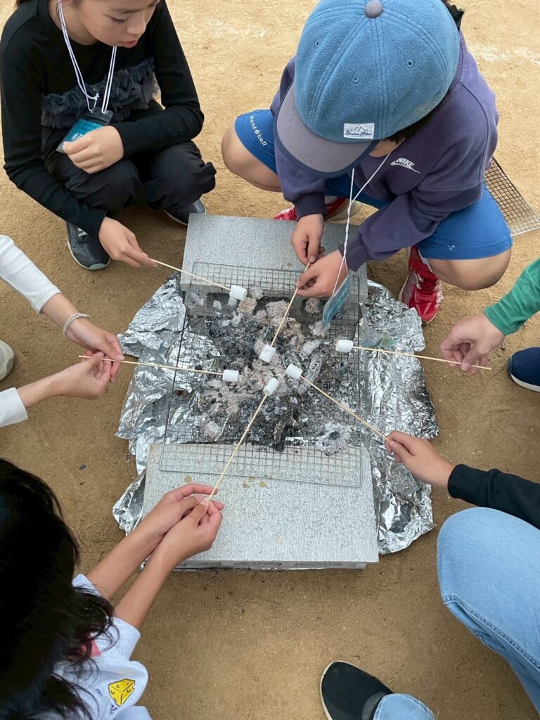 食べた後はしっかり片付けをして、終わった班からデザートタイムで焼きマシュマロを楽しんでいました。