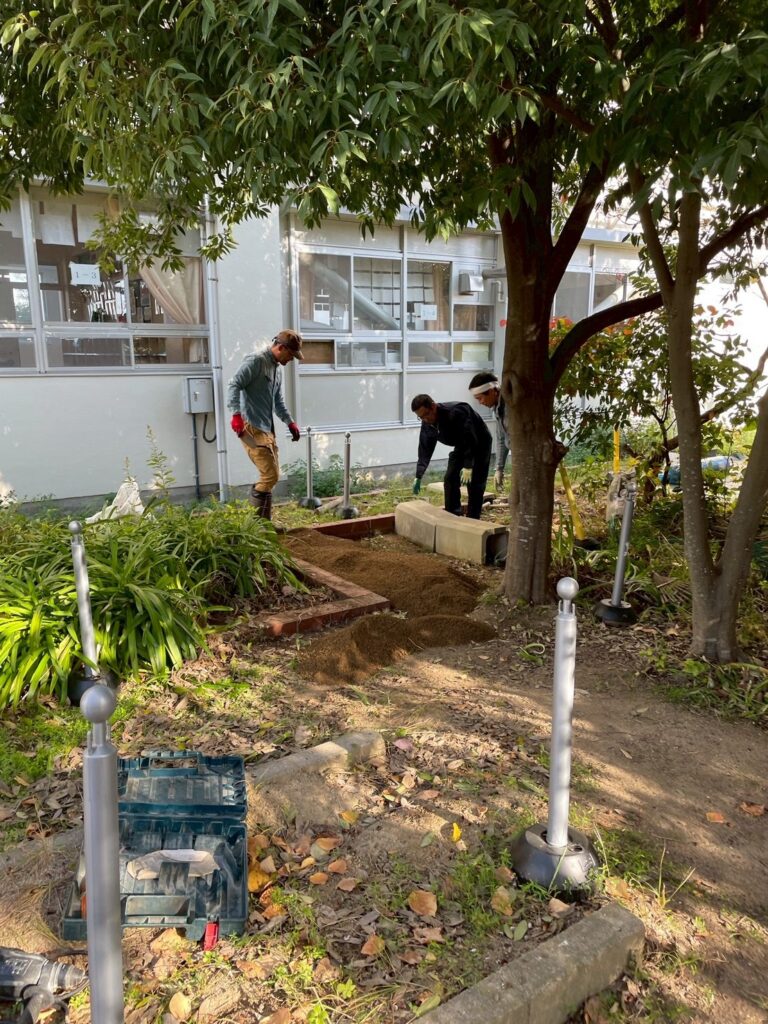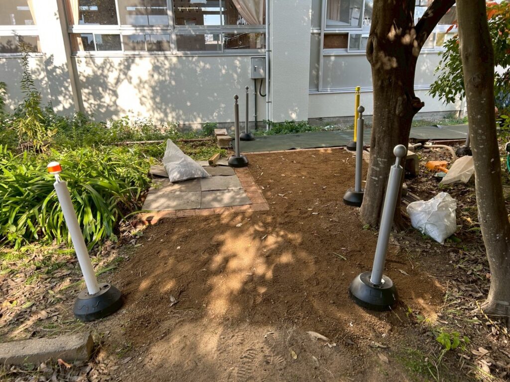 いざ始めてみると、うん十年前に使われていたであるう結構しっかりした花壇やら木の根っこやら、暗い中で安全に鑑賞してもらうには流石にこのままでは無理やな~な状態